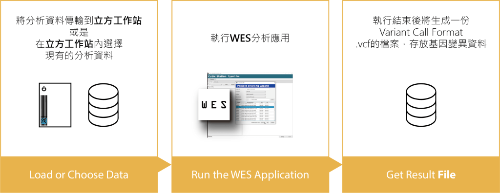標準分析檔案格式,全外顯子分析應用所產生的Variant Call Format .vcf檔案,為目前業界與學術界通用的檔案格式,可拿此檔案交付其他單位繼續進行分析。